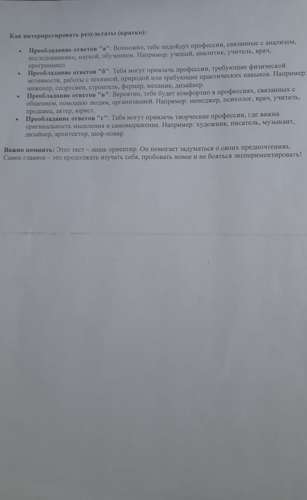 26 желтоқсанда 9-сынып оқушылары кәсіби бағдар беру бойынша тестілеуден өтті. Мақсаты: әрбір оқушыға өзінің кәсіби бейімділіктерін, қызығушылықтары мен қабілеттерін жақсы түсінуге көмектесу. Біз болашақ мансапты саналы түрде таңдау табысты және бақытты мансаптың кілті екенін білеміз. Бағалау нәтижелері оқушыларға орта мектепте және одан кейінгі өмірде саналы түрде таңдау жасауға көмектеседі.