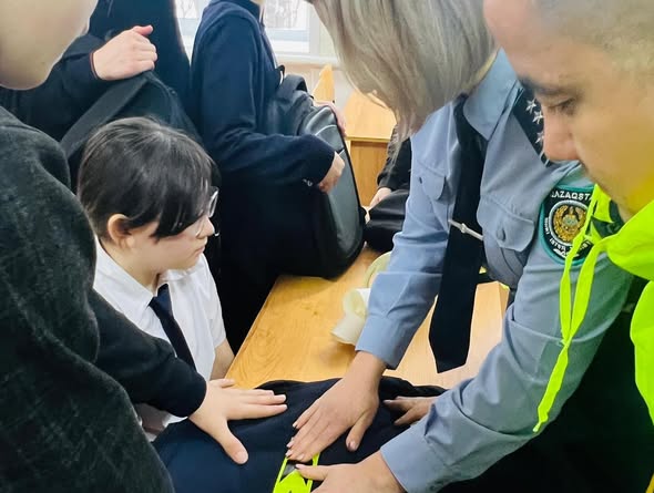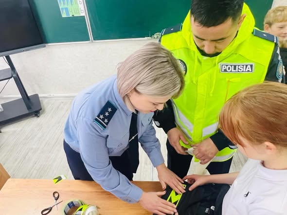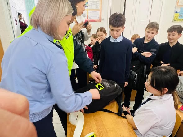 М. Жұмабаев ауданының полиция бөлімінің қызметкерлері жол-көлік оқиғаларының алдын алу мақсатында «Булаев мектеп-бөбекжай кешені» КММ 6 сынып оқушыларының сөмкелеріне жарық шағылыстыратын ленталар жапсырды.